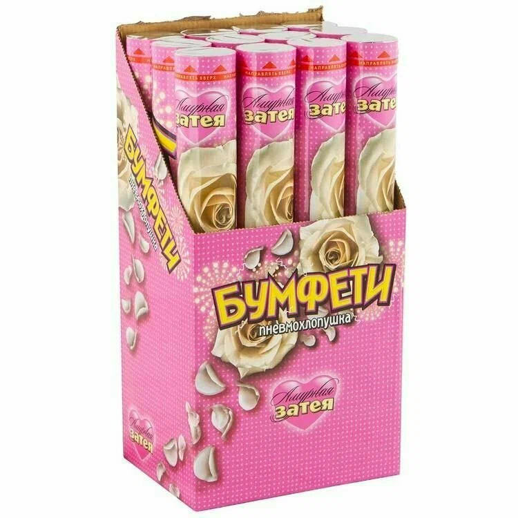 Хлопушка Бумфети 40см Лепестки роз Белые