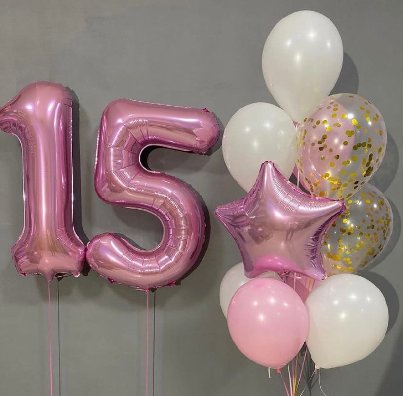 Элегантный набор шаров с фольгированными цифрами,звездой и латексными шарами с золотым конфетти.Идеален для дня рождения,фотозоны и торжеств.