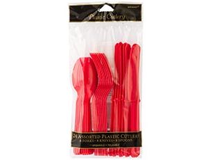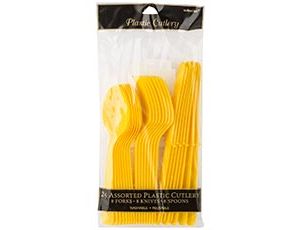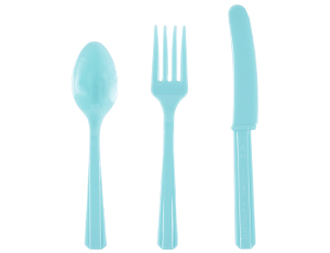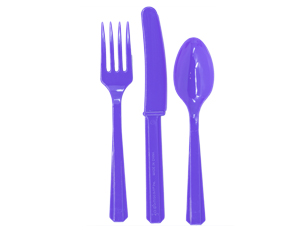 Комплект одноразовых ножей, вилок и ложек цвета. Облегчают жизнь хозяйки и украшают праздничный стол на вечеринке, свадьбе, пикнике или фуршете.